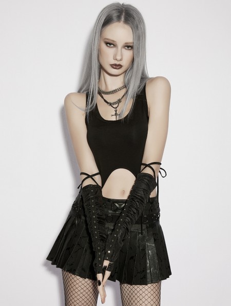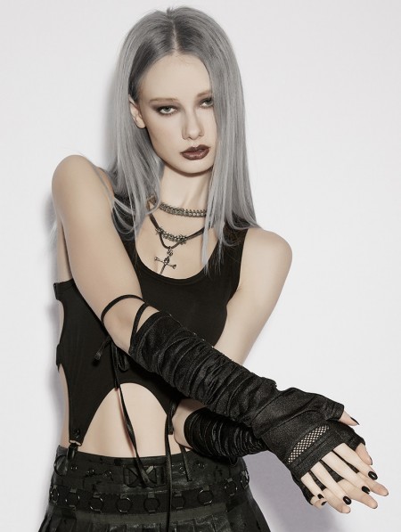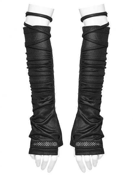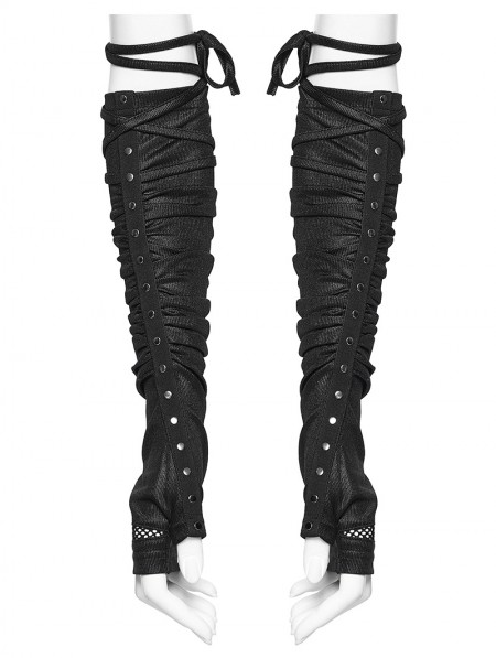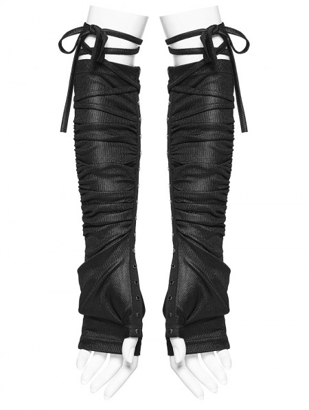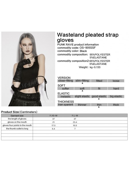 Punk Rave Black Gothic Wasteland Ruched Rivet Strap Gloves