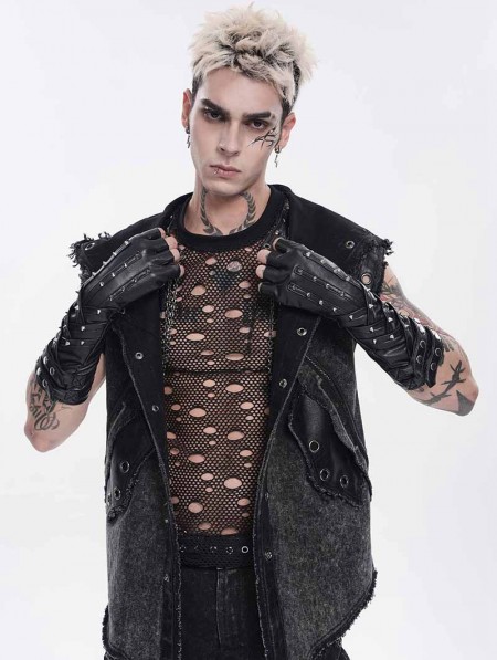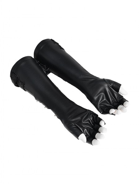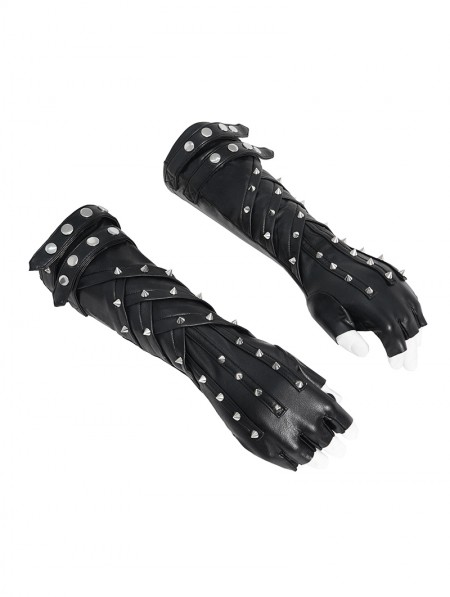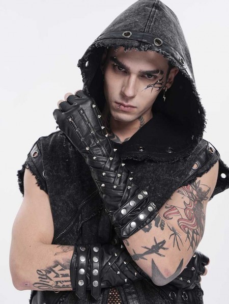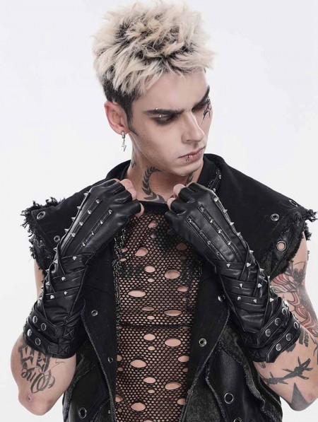 Devil Fashion Black Gothic Punk Studded Leather Gloves for Men