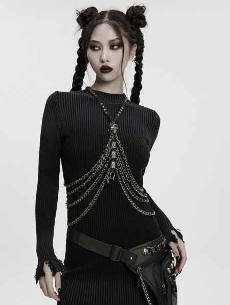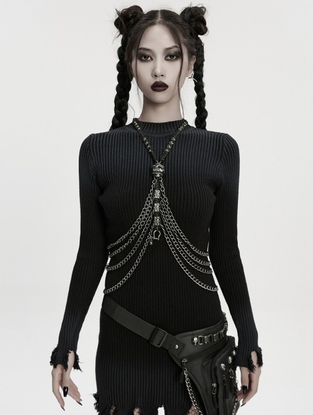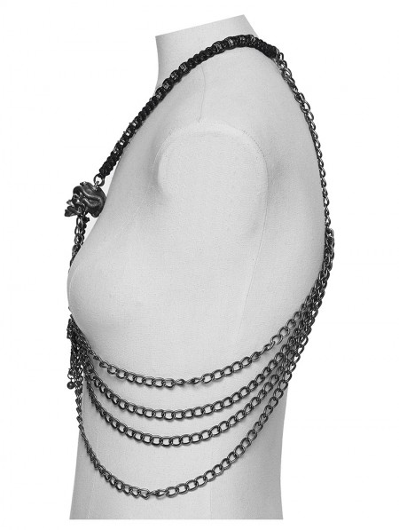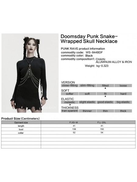 Punk Rave Black Gothic Doomsday Punk Snake-Wrapped Skull Necklace