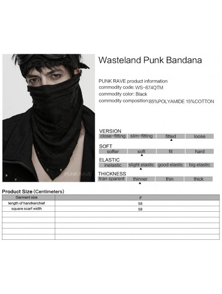 Punk Rave Black Gothic Wasteland Punk Bandana Face Mask Scarf