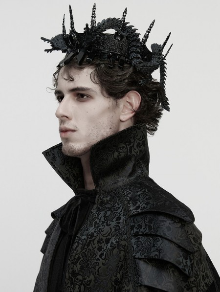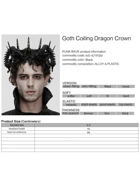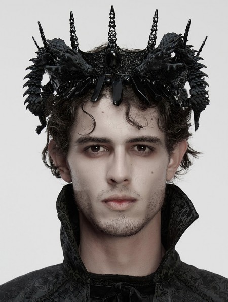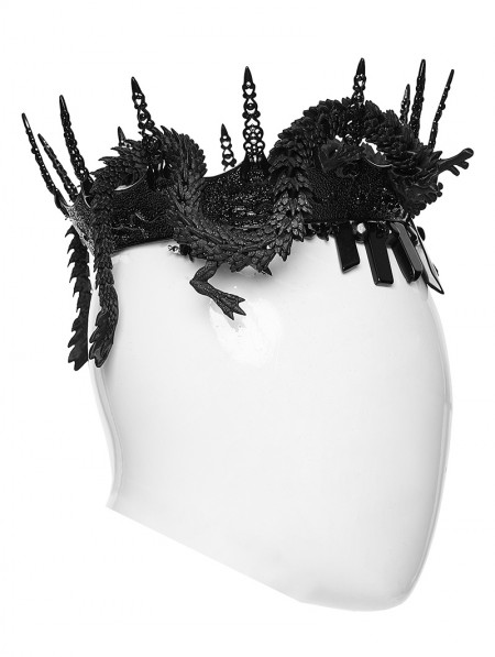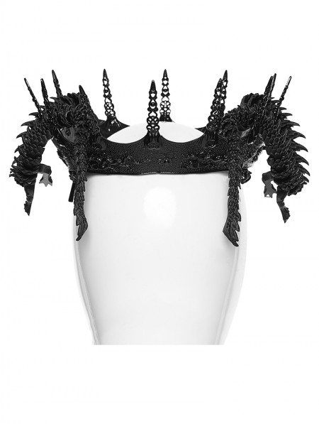Punk Rave Black Gothic Coiling Dragon Crystal Crown Headwear