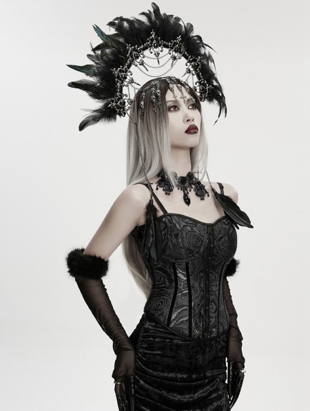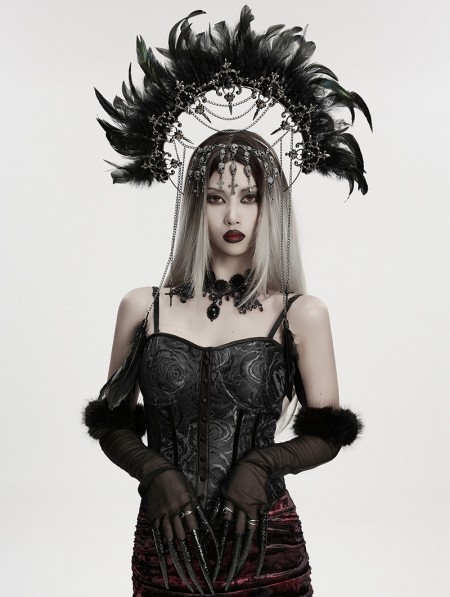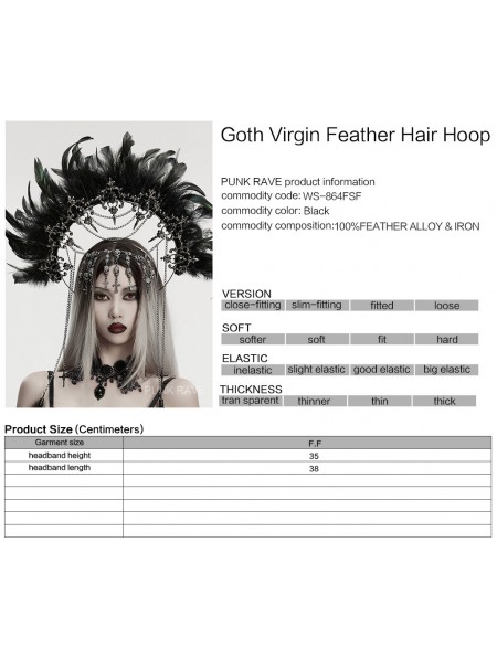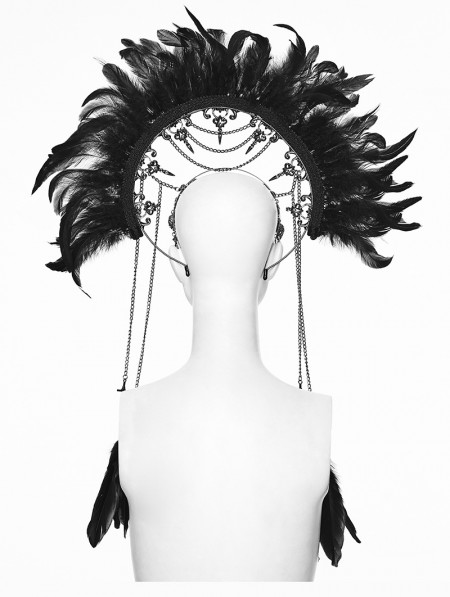 Punk Rave Black Gothic Goddess Halo Feather Hair Hoop