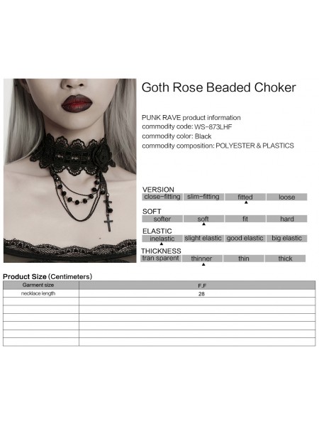 Punk Rave Black Gothic Rose Lace Beaded Chain Pendant Choker
