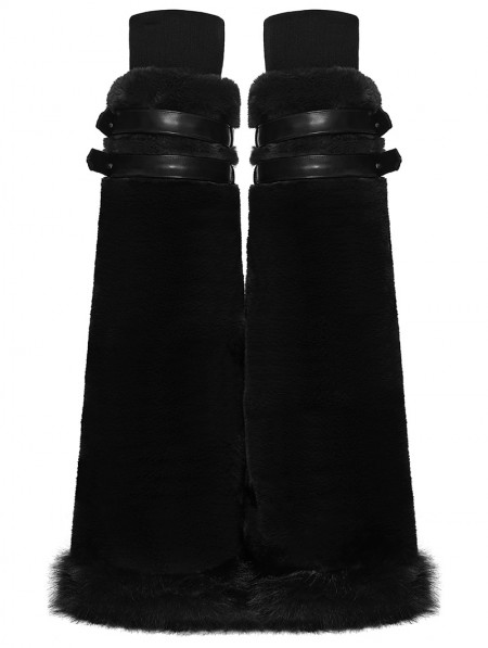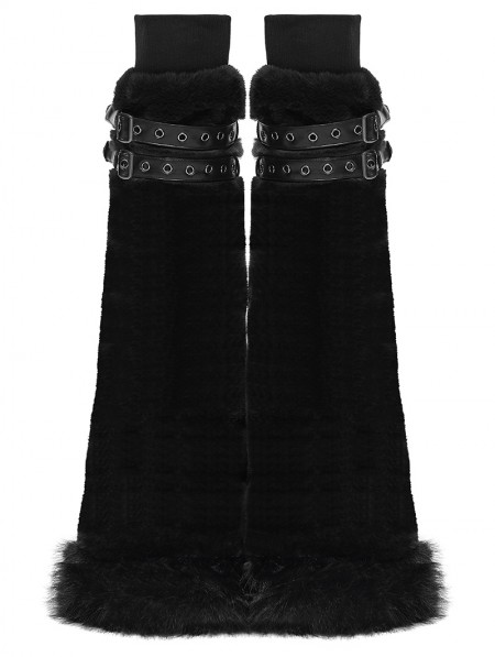 Punk Rave Black Gothic Punk Striped Fluffy Fur Leg Warmers