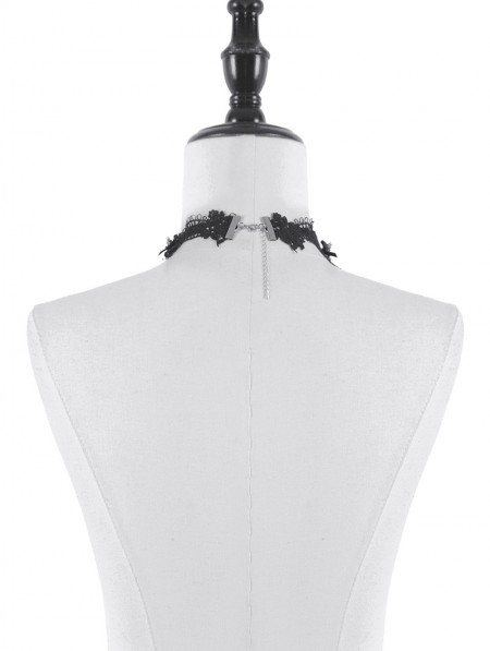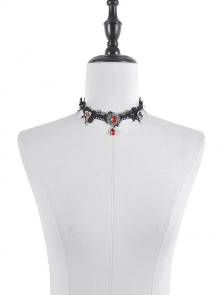 Dark in love Black and Red Retro Gothic Crystal Pendant Lace Choker