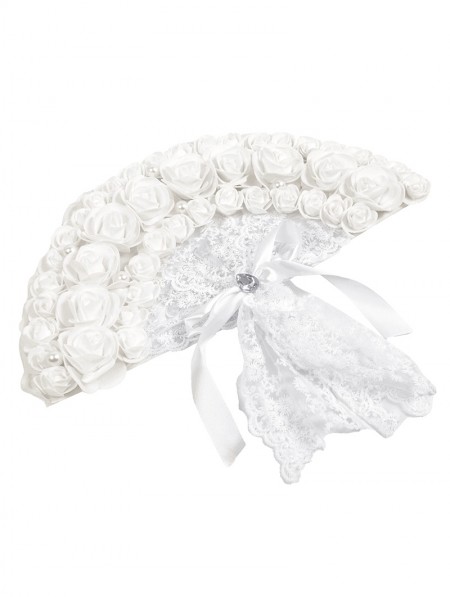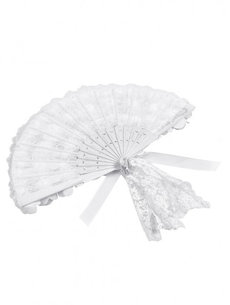 Dark in love White Gothic Rose Pearl Embellished Lace Fan