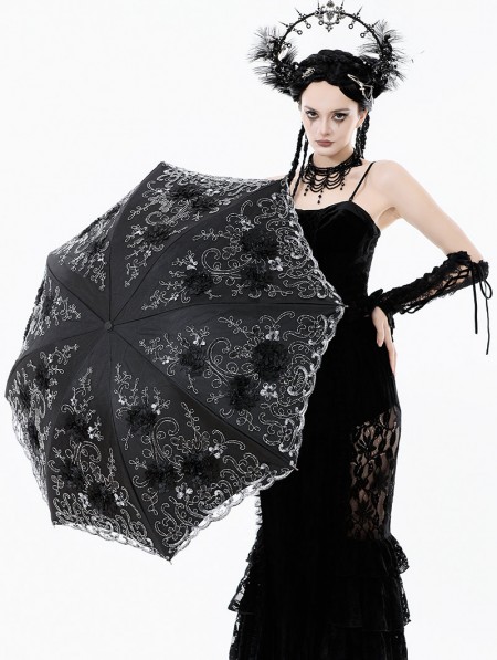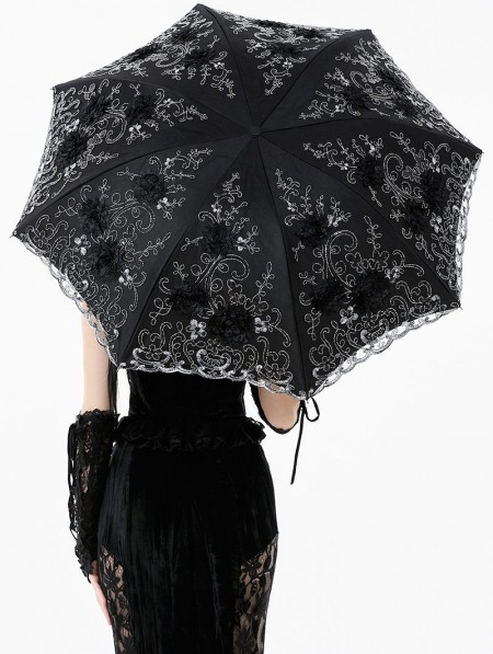 Dark in love Black Gothic Lolita Elegant Embroidered Lace Umbrella