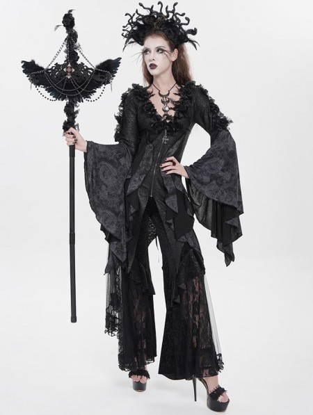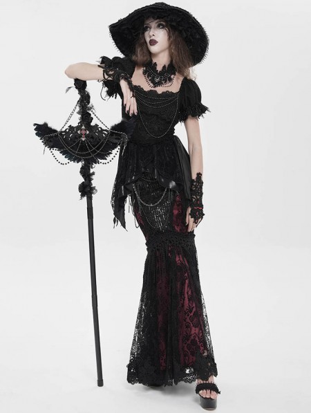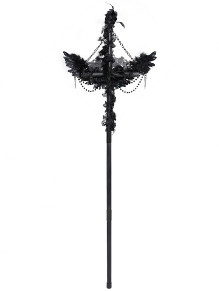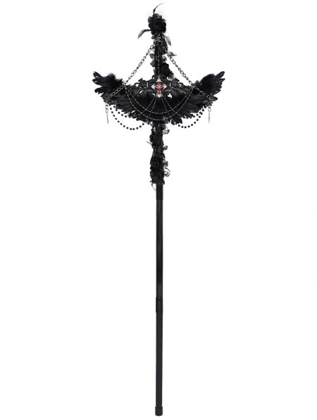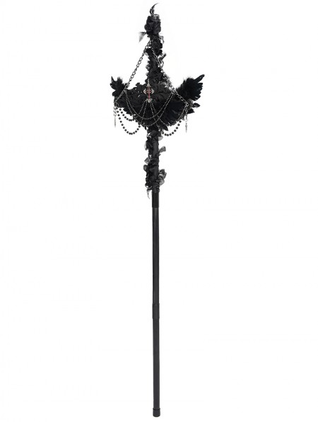 Eva Lady Black Gothic Retro Cross Beaded Chain Feather Scepter