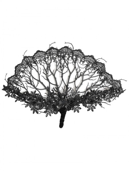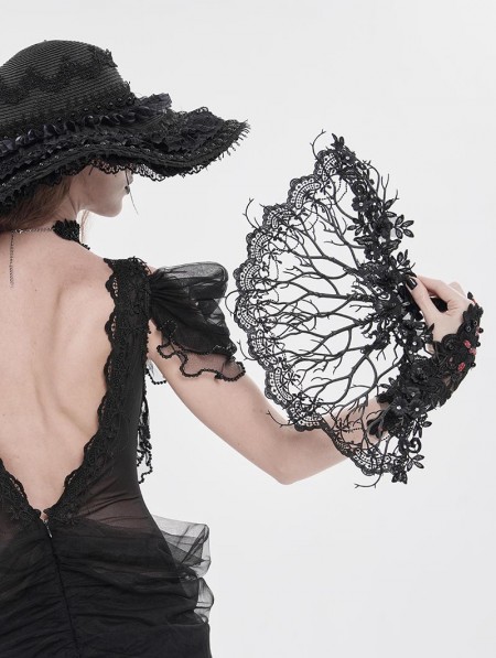 Eva Lady Black Gothic Vintage Branch Floral Lace Fan