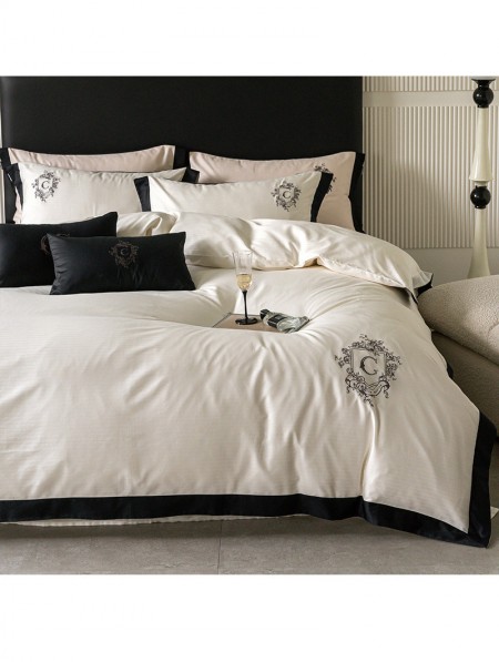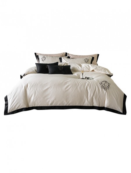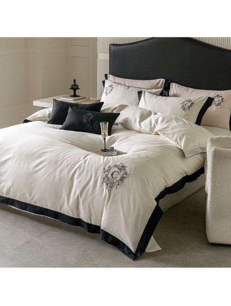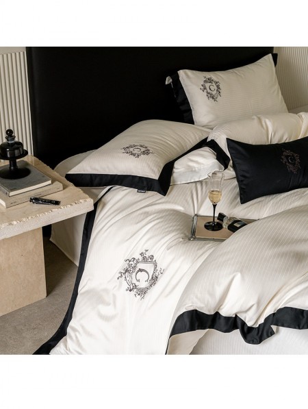 Ivory and Black Vintage Floral Embroidered Comforter Set