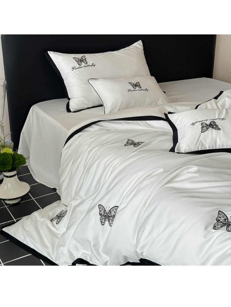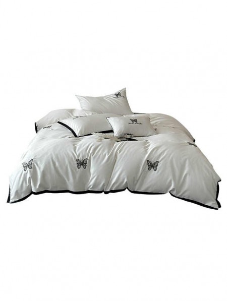White and Black Retro Lace Butterfly Embroidery Comforter Set