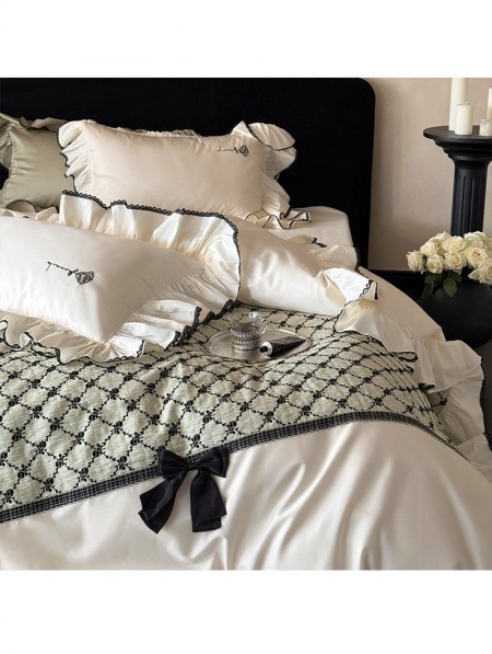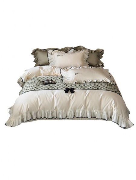 White Romantic 3D Bow Decor Ruffled Comforter Set