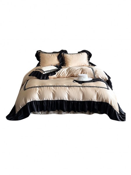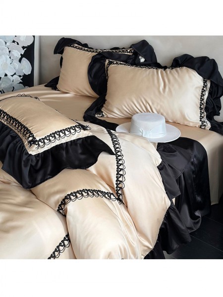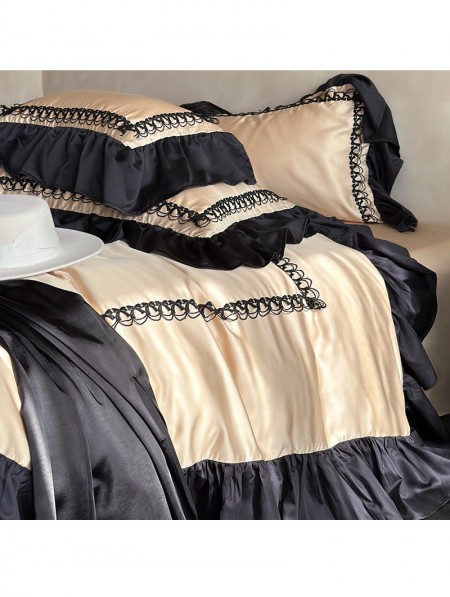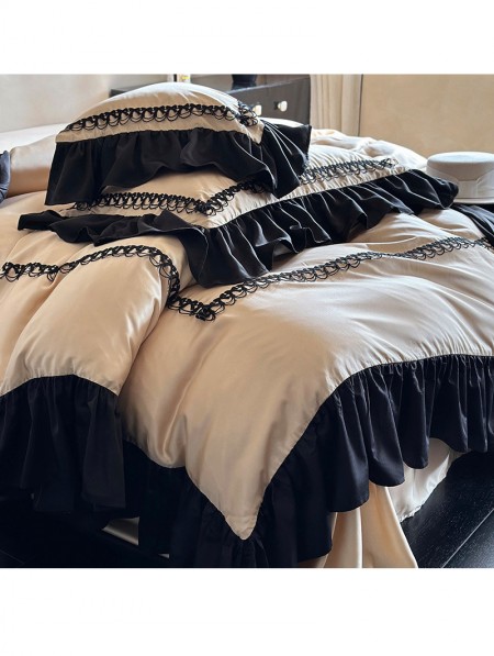 Audrey Vintage Black Ruffled Lace Trim Comforter Set