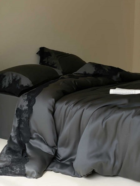 Black Olive Gothic Luxury Lace Embroidery Comforter Set