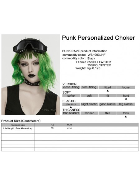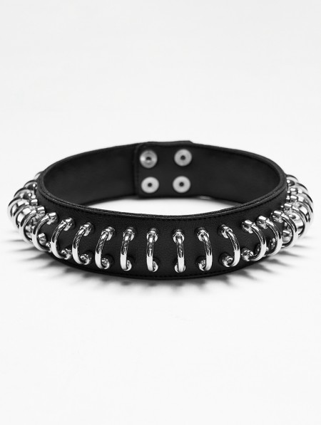 Punk Rave Black Gothic Punk Leather and Metal Personalized Choker