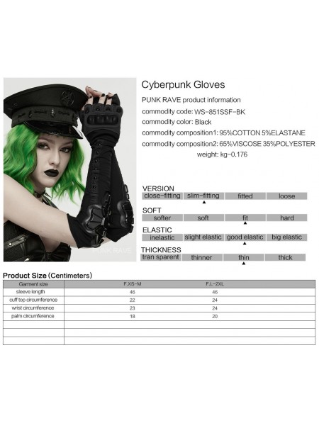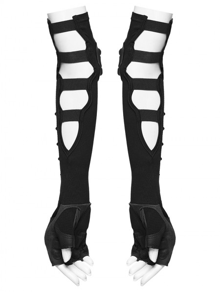 Punk Rave Black Gothic Cyberpunk Cutout Fingerless Gloves