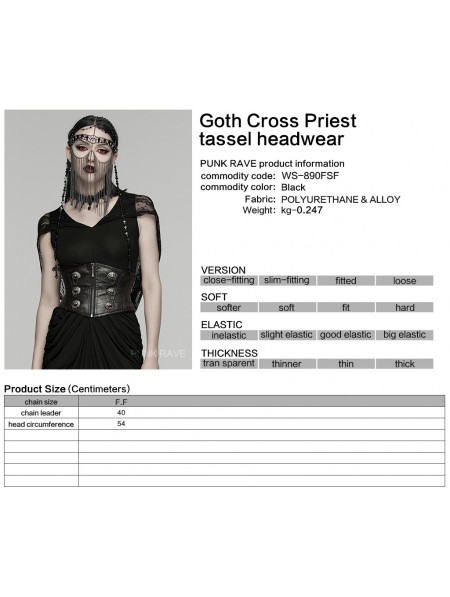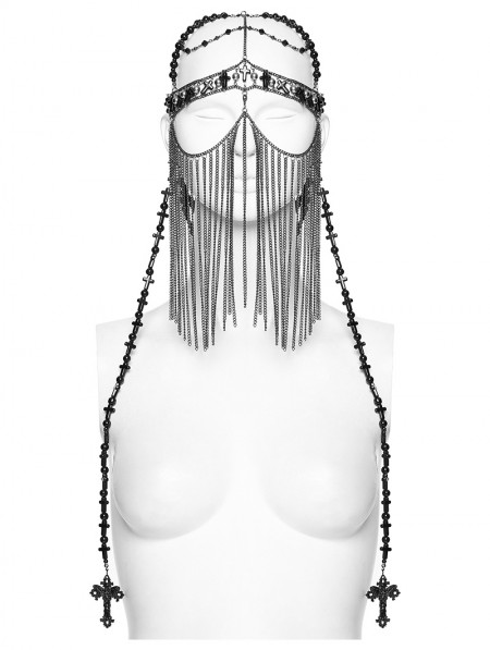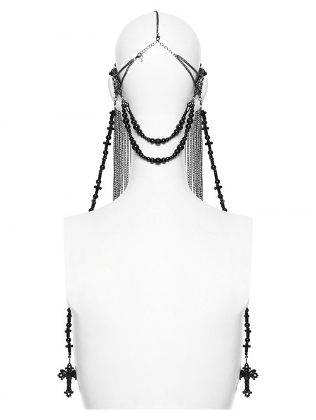 Punk Rave Black and Silver Gothic Cross Priest Tassel Headwear