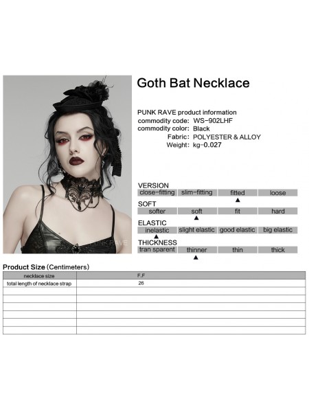 Punk Rave Black Gothic Bat Pendant Lace Chain Necklace