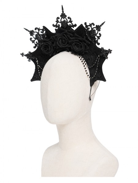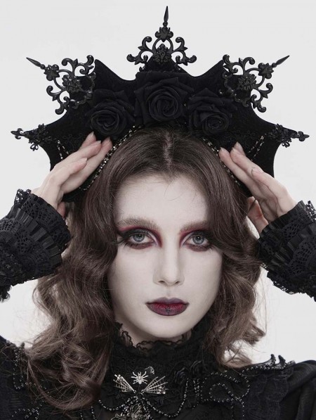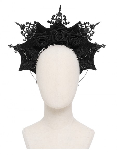 Devil Fashion Black Gothic Velevt Rose Beaded Chain Bat Wing Headband