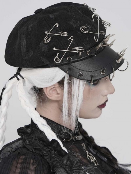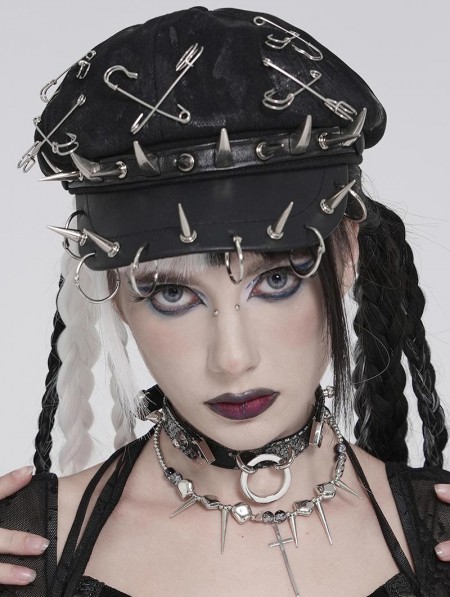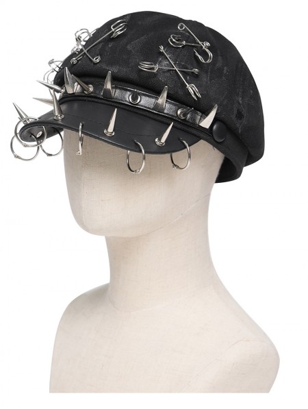Devil Fashion Black Gothic Punk Rivet Spiked Pin Hat with Rings