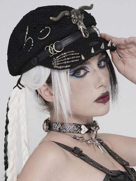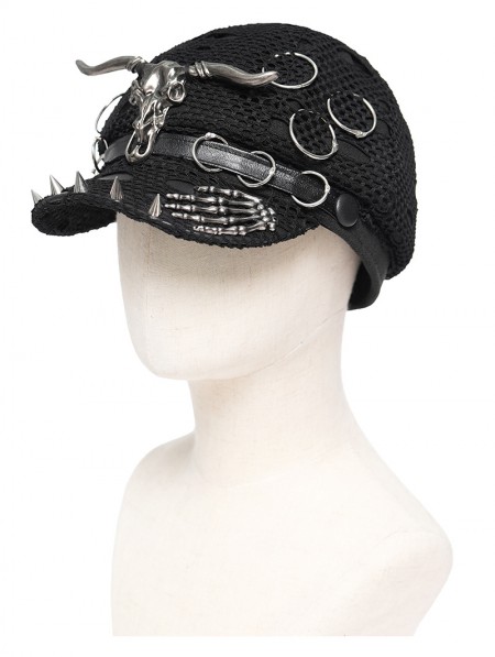 Devil Fashion Black Gothic Punk Skeleton Spike Studded Hat