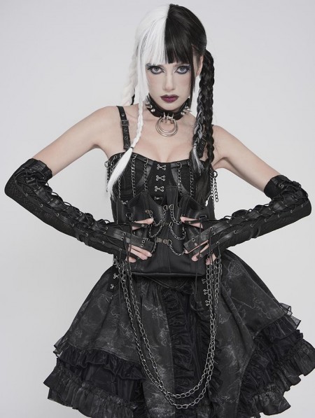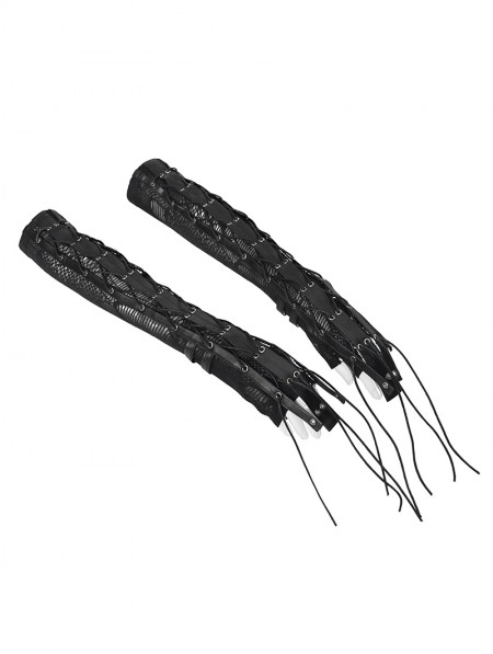 Devil Fashion Black Punk Gothic Lace-Up Mesh Zip Gloves