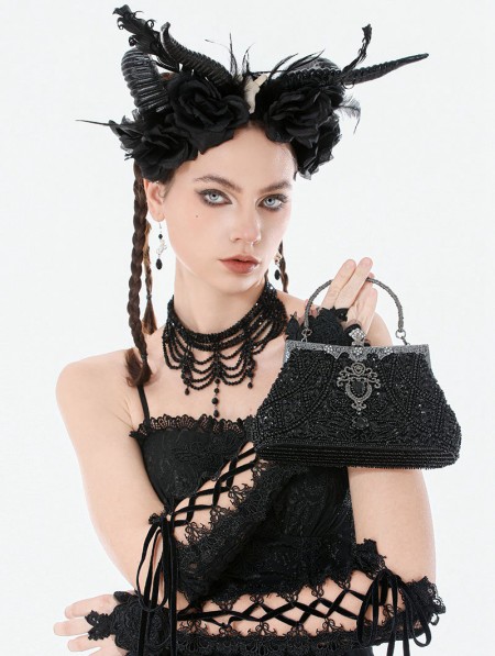 Dark in love Black Gothic Vintage Beaded Evening Party Bag