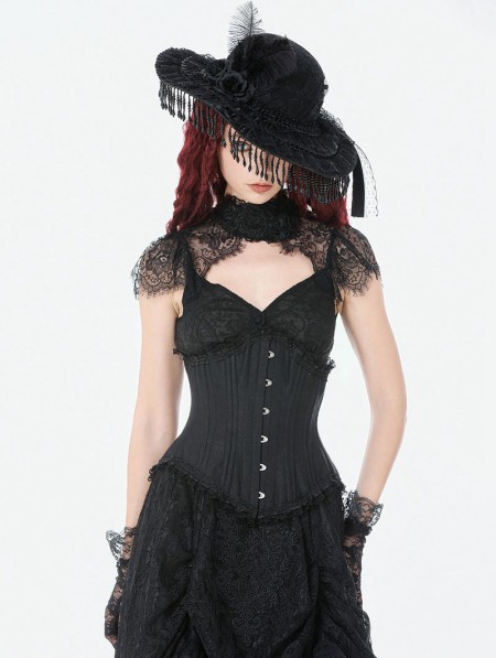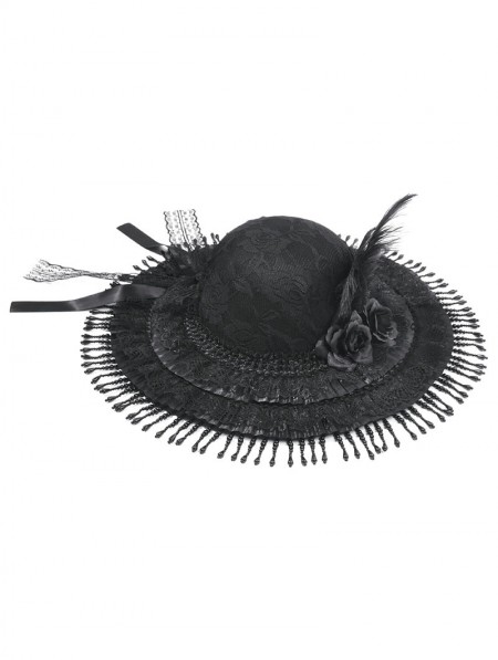Dark in love Black Gothic Vintage Lace Feather Tassel Hat