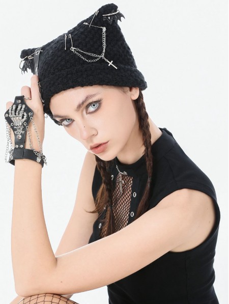 Dark in love Black Gothic Punk Metal Cross Chain Knit Hat