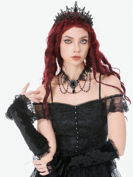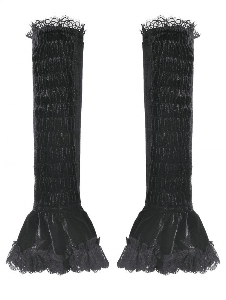 Dark in love Black Gothic Velvet Lace Embroidered Gloves