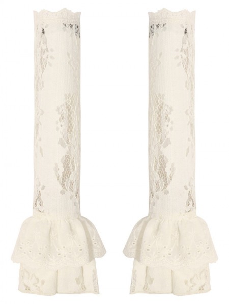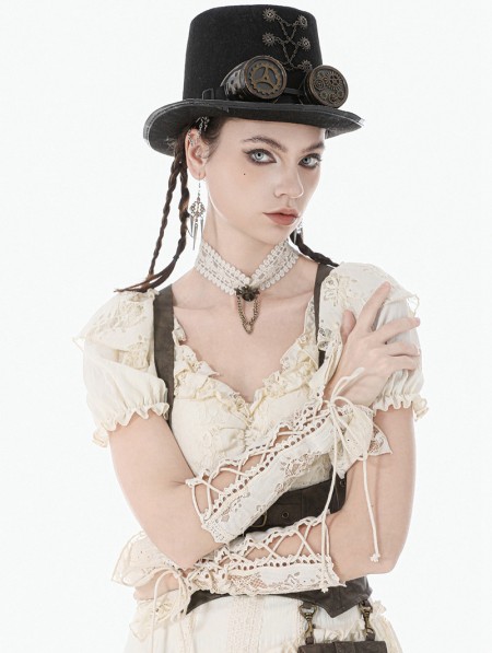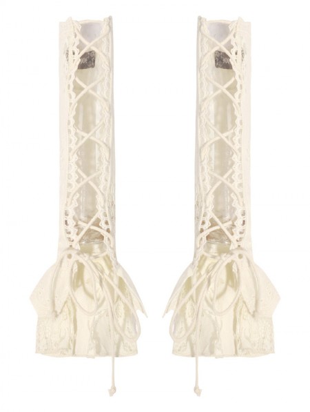 Dark in love Ivory Steampunk Gothic Lace Layered Ribbon Gloves