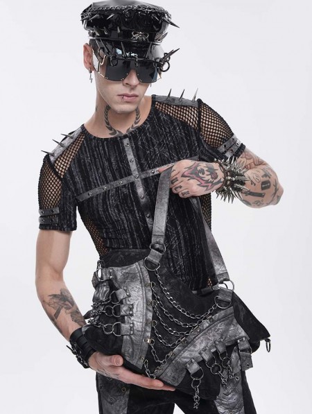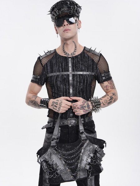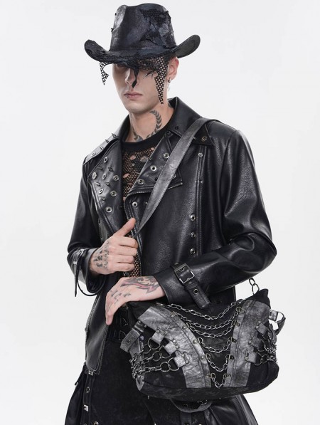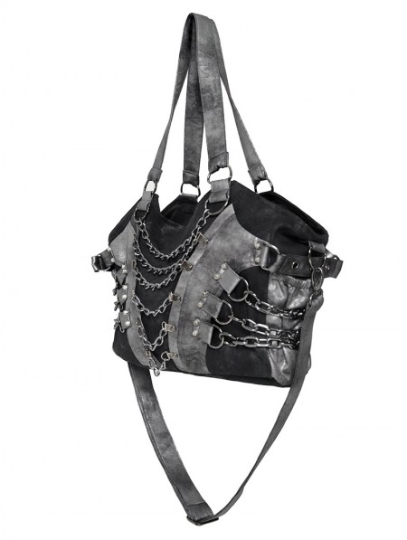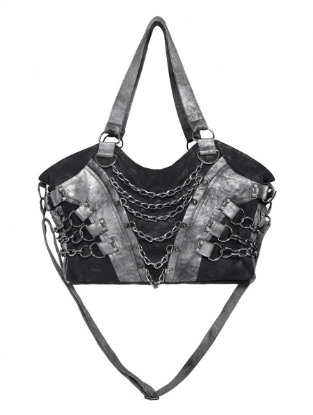 Devil Fashion Black Gothic Punk Panelled Shoulder Bag with Chain