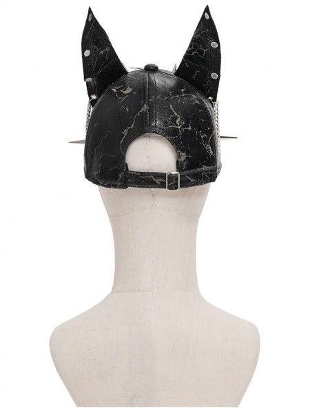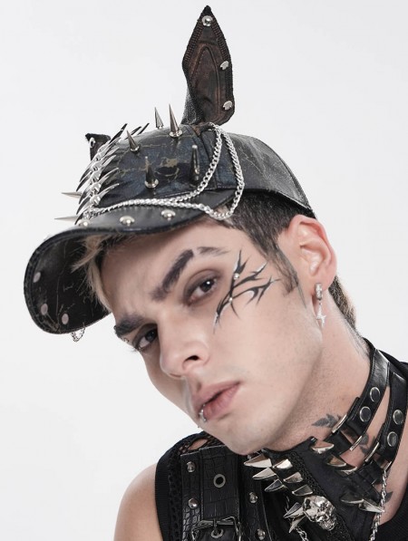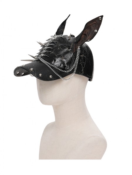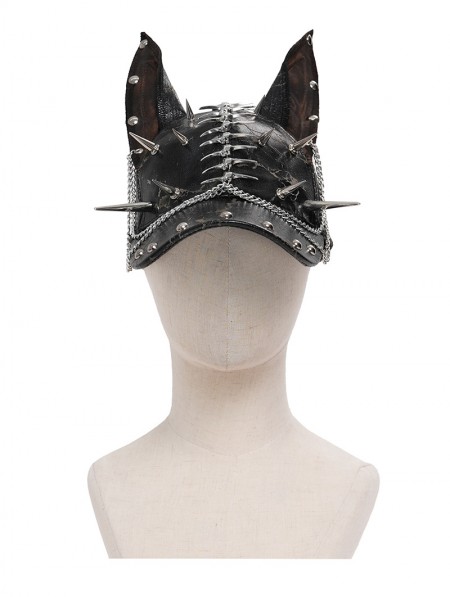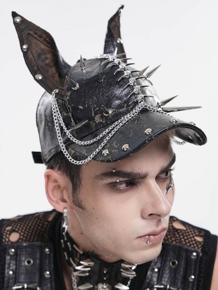 Devil Fashion Black Gothic Punk Spike Studded Ear Hat with Chain
