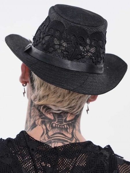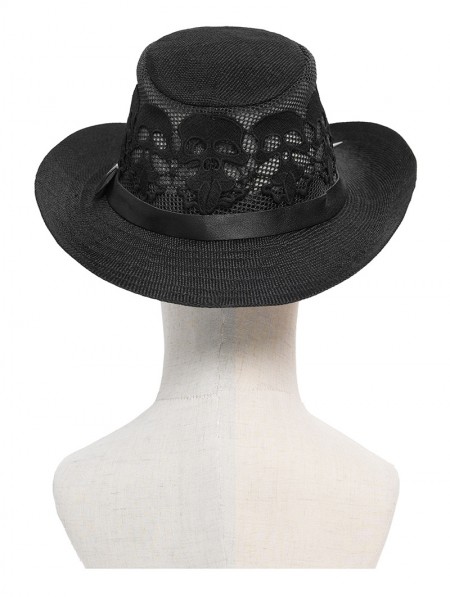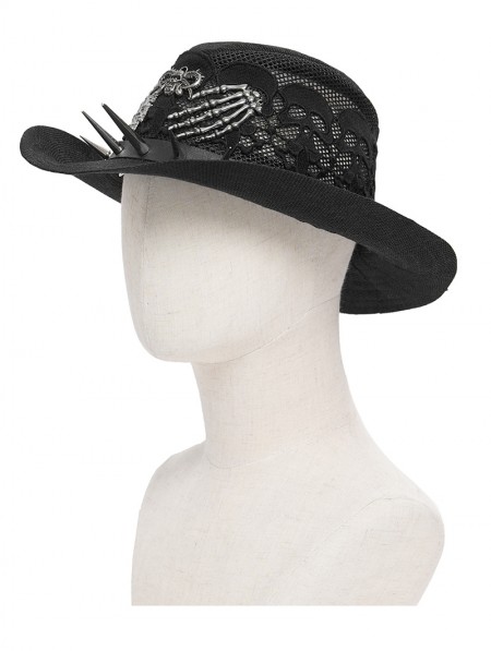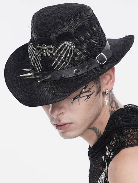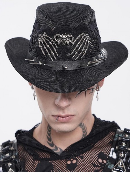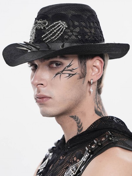 Devil Fashion Black Punk Gothic Skeleton Hand Skull Mesh Cowboy Hat