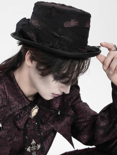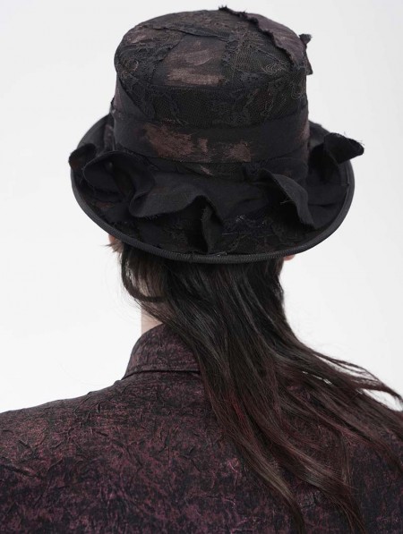 Devil Fashion Black Retro Gothic Ruffle Tassel Tie Hat