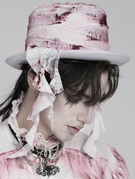 Devil Fashion White Retro Gothic Ruffle Tassel Tie Hat