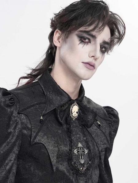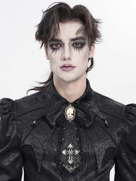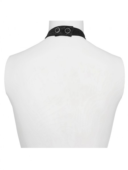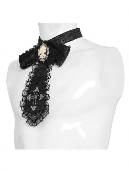 Devil Fashion Black Retro Gothic Cross Embroidery Lace Bow Tie