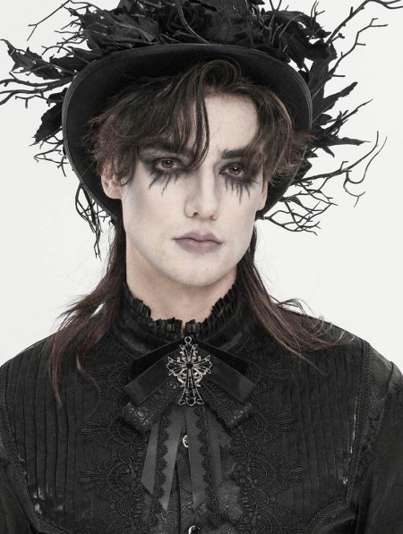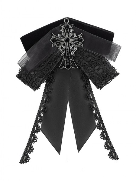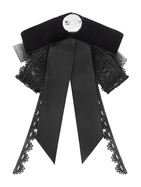 Devil Fashion Black Gothic Retro Embroidered Lace Applique Bow Tie