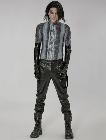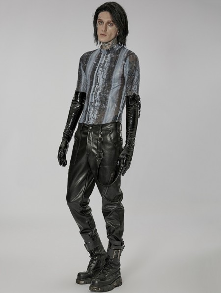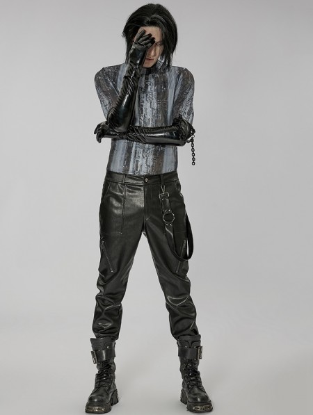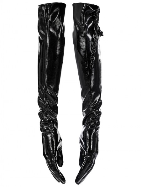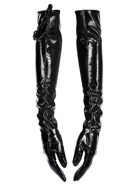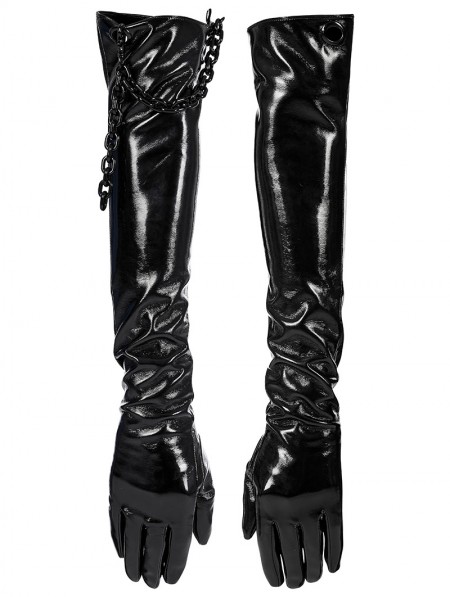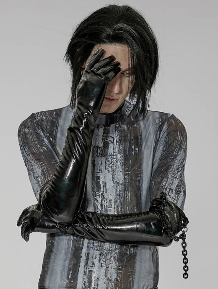 Punk Rave Men's Black Gothic Punk Patent Leather Gloves with Detachable Chain