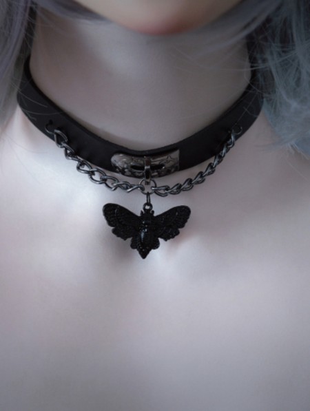 Black Gothic Moth Pendant Punk Chain PU Leather Choker