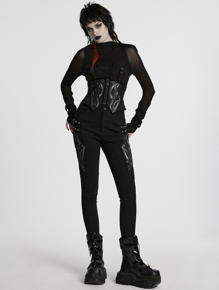 Punk Rave Black Gothic Cyberpunk Patched Underbust Corset Waistband