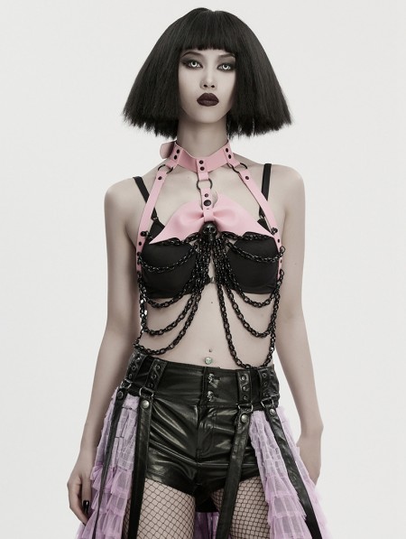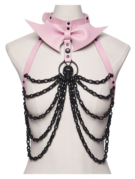 Punk Rave Black and Pink Gothic Punk Bat Bow Skull Chain Harness