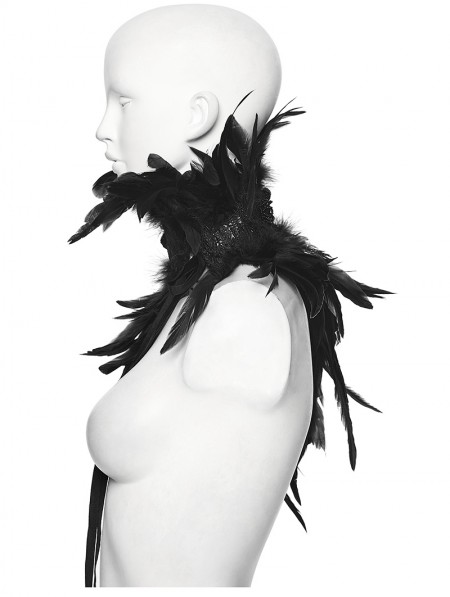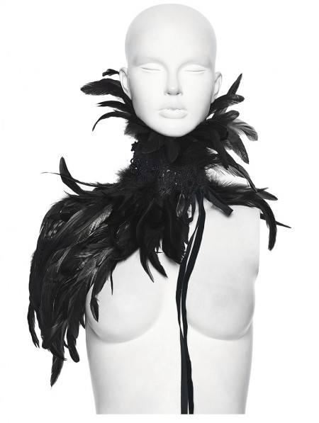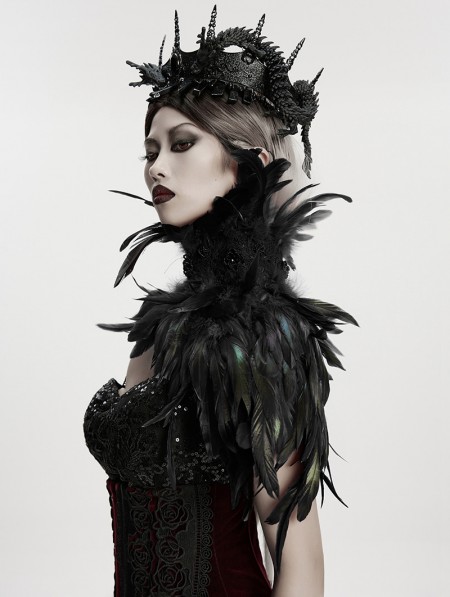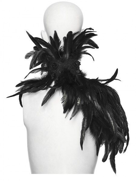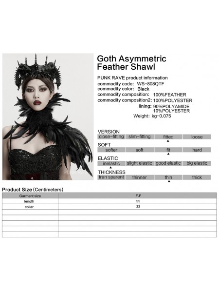 Punk Rave Black Gothic Asymmetric Lace Feather Shawl