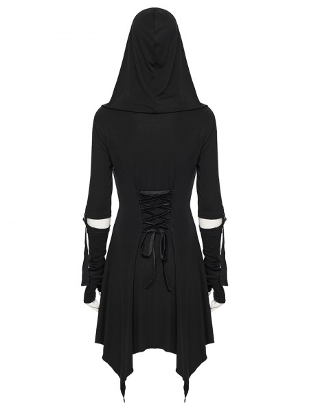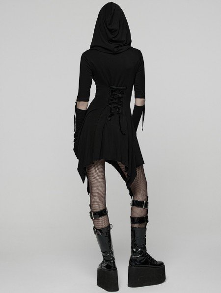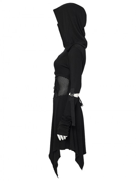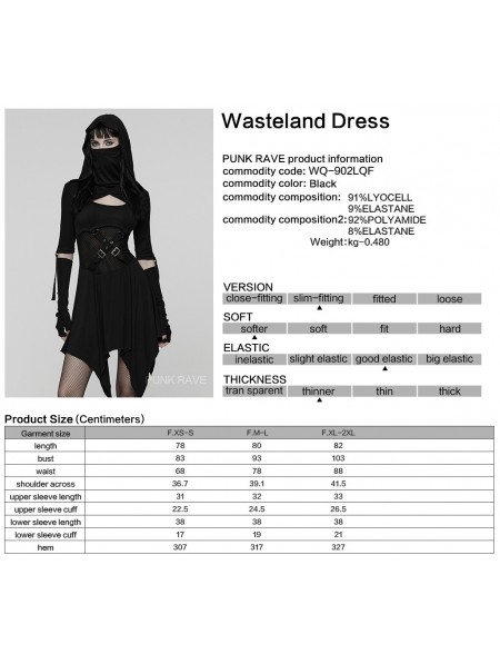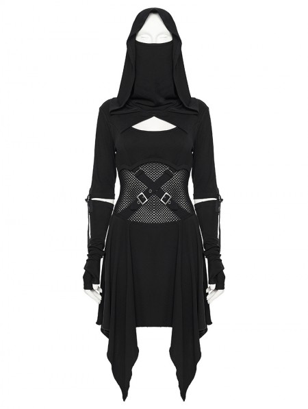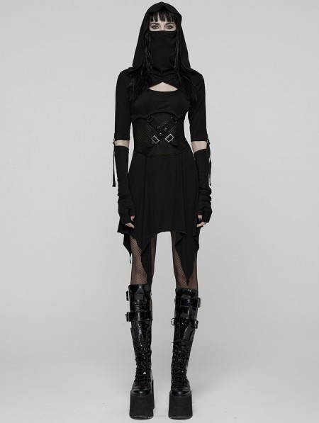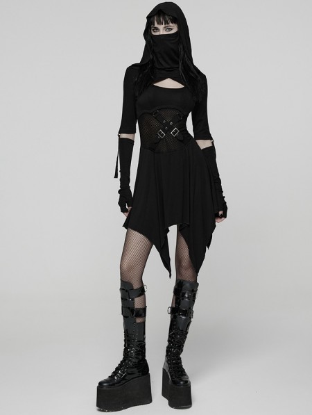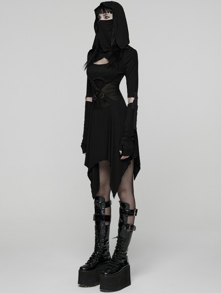 Punk Rave Black Gothic Punk Wasteland Cutout Hooded Face Mask Short Dress