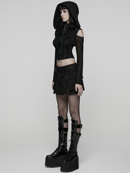Punk Rave Black Gothic Wasteland Hooded Short Vest for Women