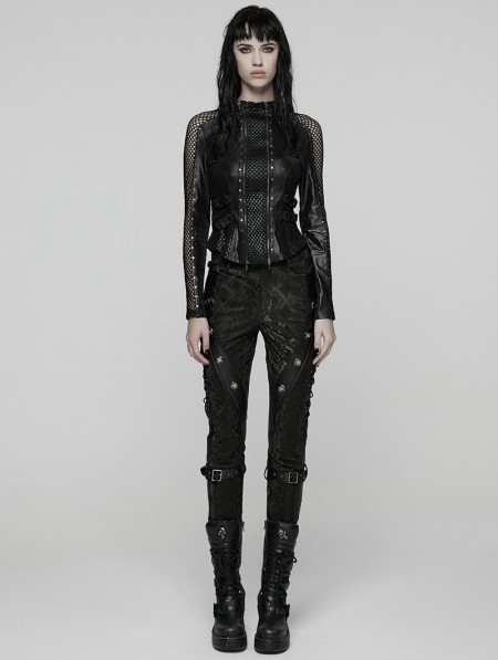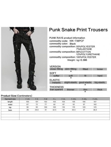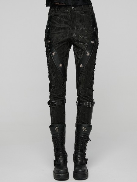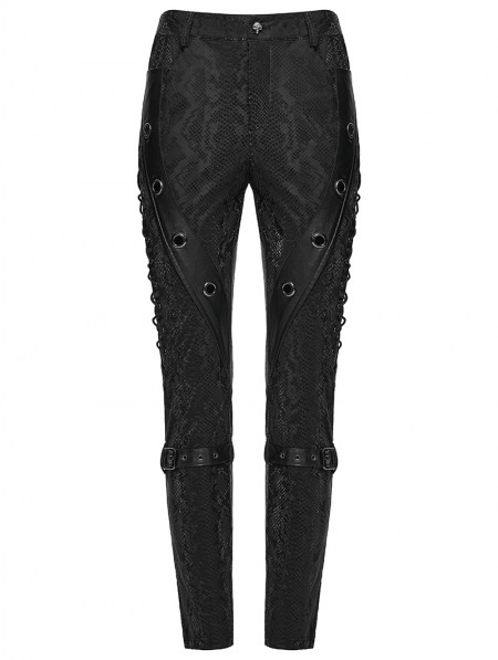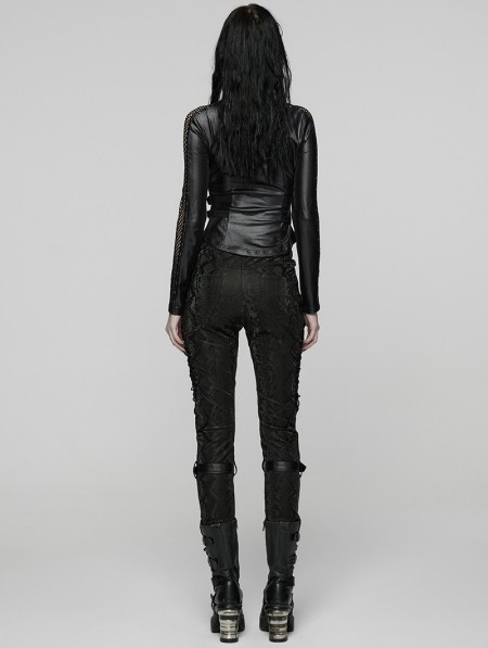 Punk Rave Black Gothic Punk Patchwork Snake Print Trousers for Women