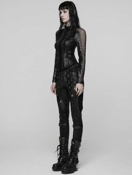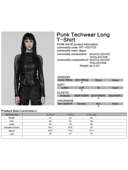 Punk Rave Black Gothic Punk Techwear Long Sleeve T-Shirt for Women