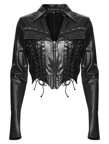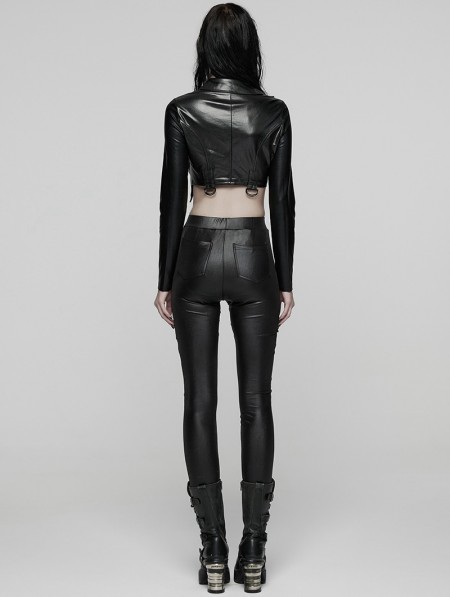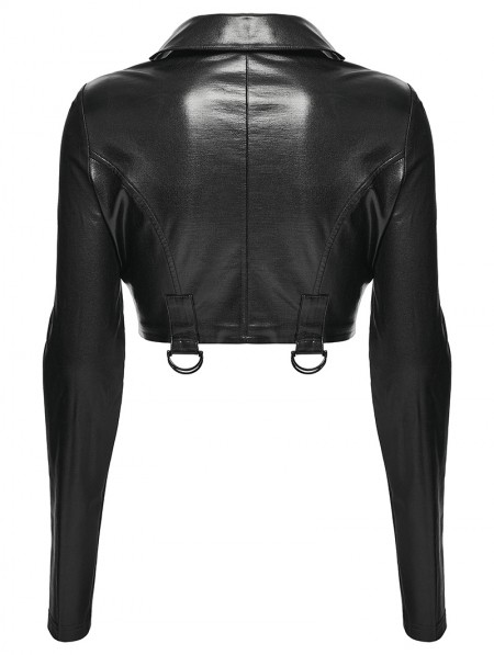 Punk Rave Black Gothic Punk Bat Collar Long Sleeve Irregular Shirt for Women