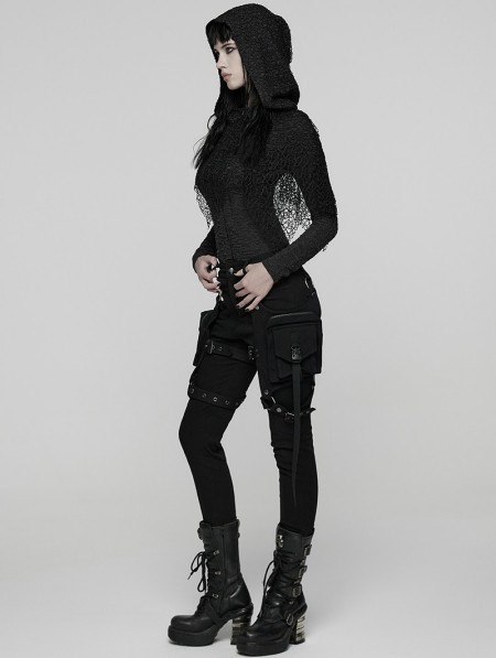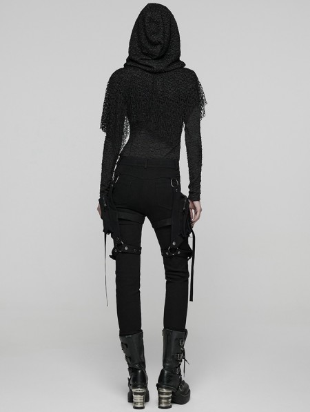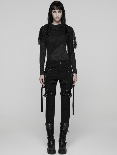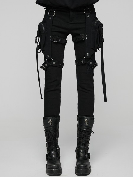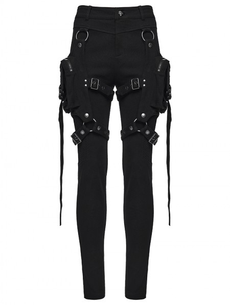 Punk Rave Black Gothic Punk Detachable Leg Pockets Pants for Women