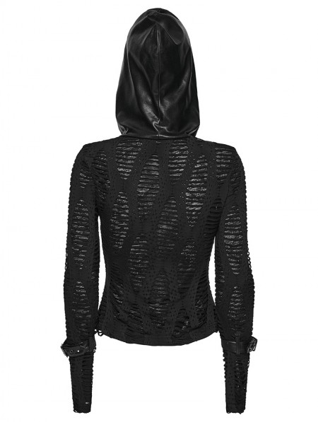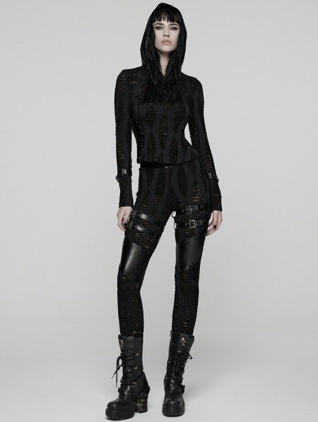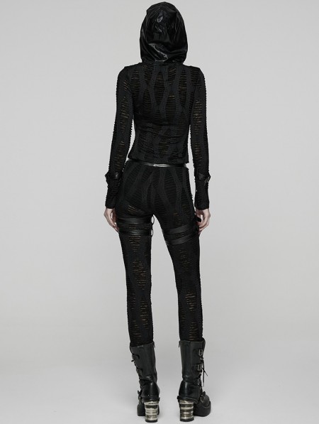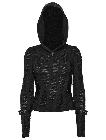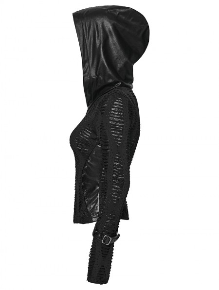 Punk Rave Black Gothic Decadent Punk Long Sleeve Hooded T-Shirt for Women